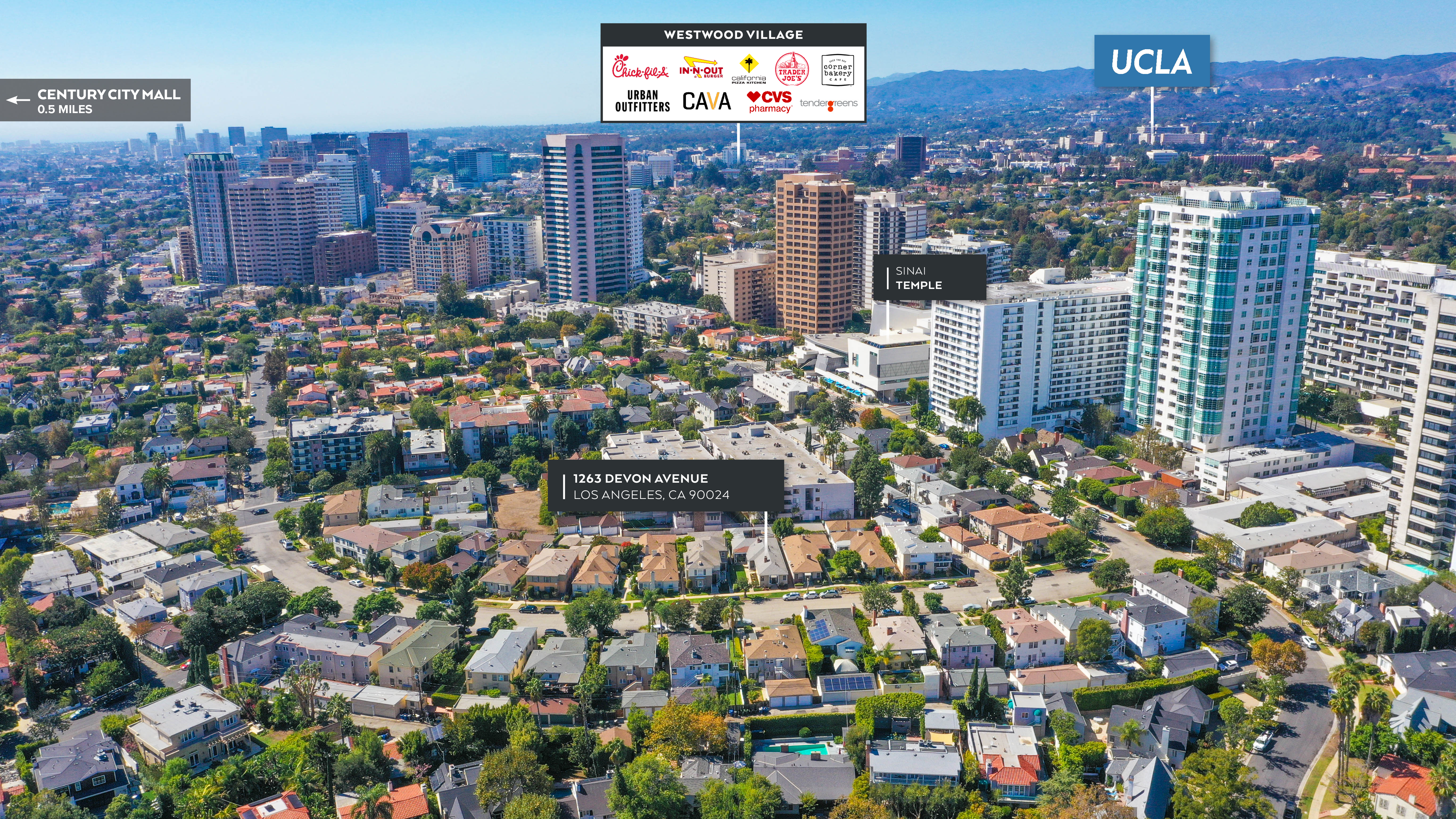 The Shamooelian Real Estate Group is pleased to present 1263 Devon Avenue, a 4-unit turnkey property located in the heart of the prestigious Westwood neighborhood. Residing less than 0.5 miles from one of LA's top shopping hubs, Westfield Century City, this modern gem is conveniently located near UCLA, trendsetting restaurants, cafes, and retail shops. This property was constructed of wood frame and stucco on a raised foundation built in 1939 with a square footage of 2,419 on a 5,400-square foot lot, and is comprised of an excellent unit mix consisting of one (1) 2-bedroom + 1-bathroom unit, and three (3) studio units. Two (2) of the studios will be delivered vacant upon the close of escrow.